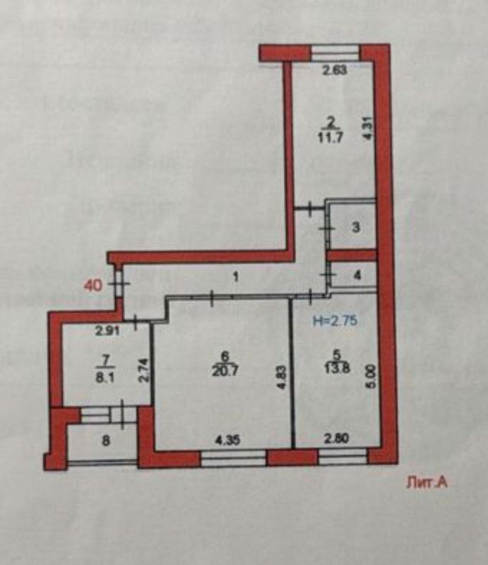 Квартира сухая и теплая, имеет отличную планировку. Комнаты изолированные площадью 20,7 м2, 13,8 м2, 11,7 м2, кухня 8,1 м2 с выходом на балкон, раздельный санузел. Высота потолков 2,75 м.